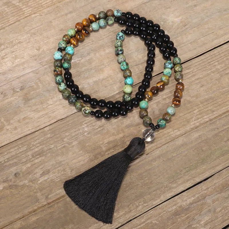 Conjunto Pulsera y Collar Mala Obsidiana y Ojo de Tigre "Amuleto de Protección"