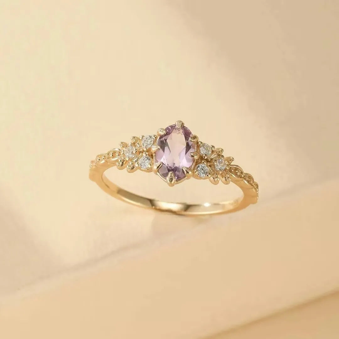 Anello Pietre Naturali "Chaton Joyeux" Dorato Oro 14KAnello Pietre Naturali "Chaton Joyeux" Dorato Oro 14K