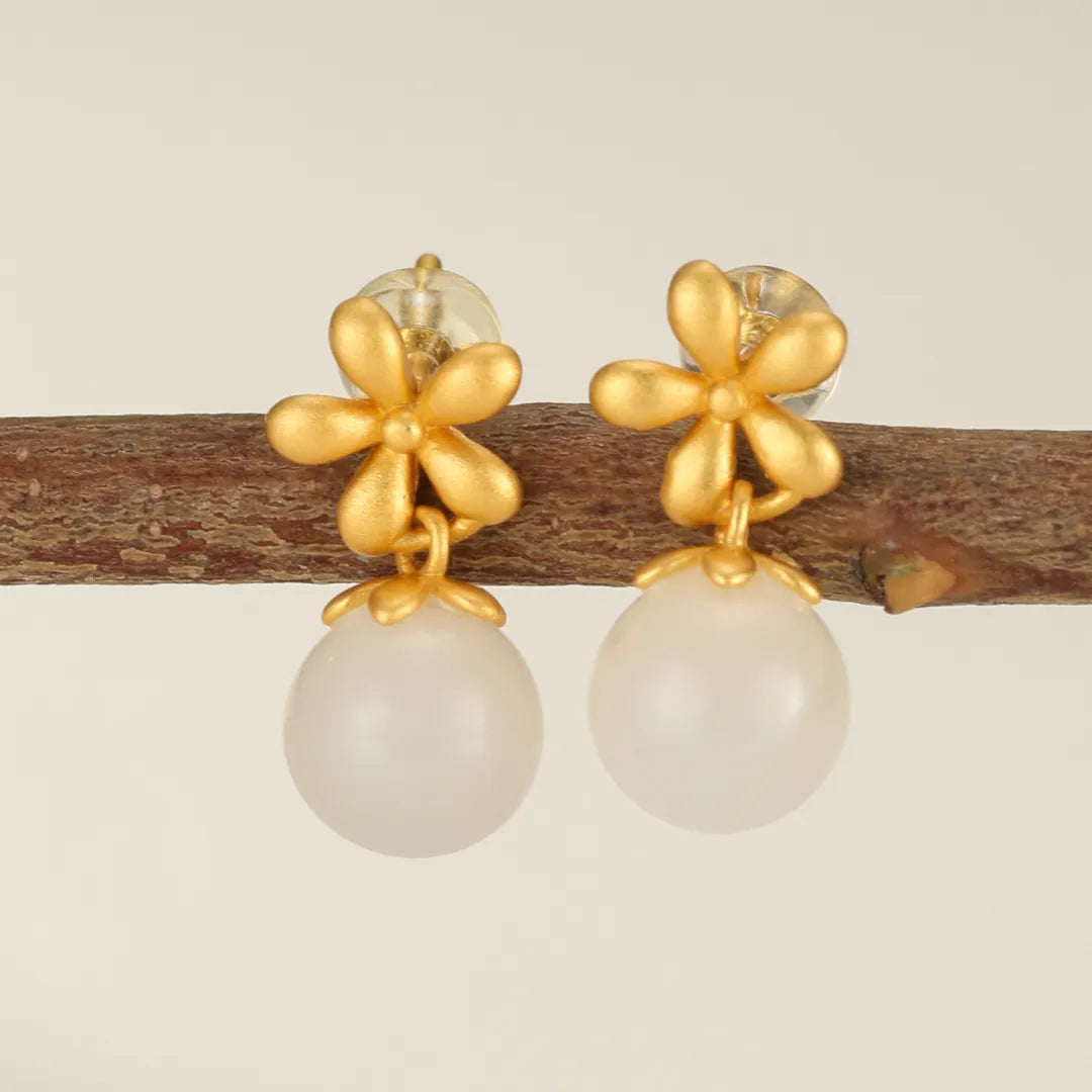 Boucles d’Oreilles Jade “Éclat Floral” Argent Doré Or