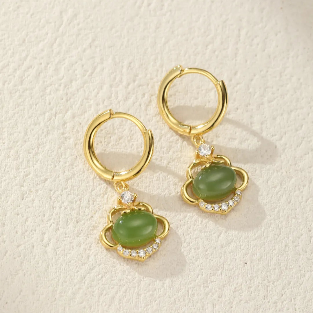 Plongez dans l’élégance intemporelle avec les boucles d’oreilles Sérénité Ancestrale, où la douceur du jade naturel rencontre le raffinement du zircon étincelant.