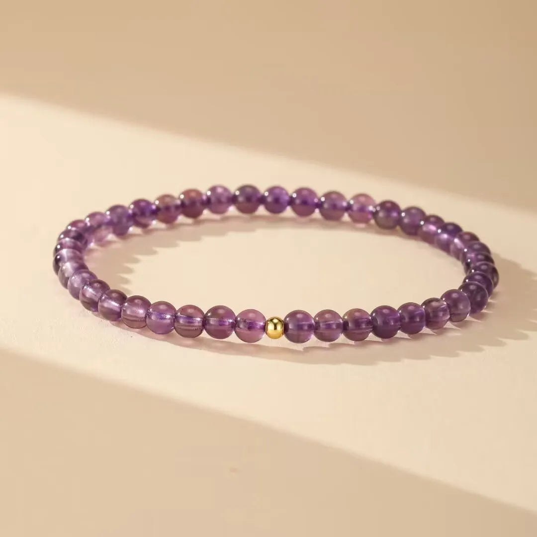 Avec ses teintes profondes et lumineuses, Équilibre Vibrant est un bracelet d’améthyste qui allie élégance naturelle et bienfaits énergétiques. Disponible en trois tailles de perles (4 mm, 6 mm ou 8 mm), il s’adapte à toutes les préférences, du style discret au look affirmé.