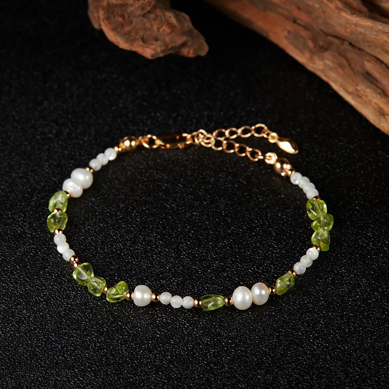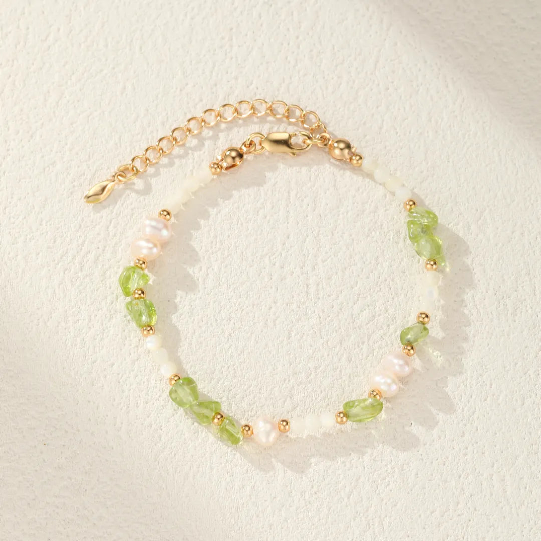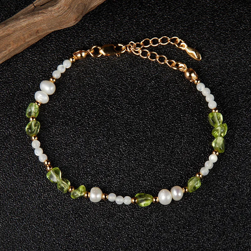 Bracelet Péridot, Perle et Nacre "Élégance Solaire" Argent Doré Or