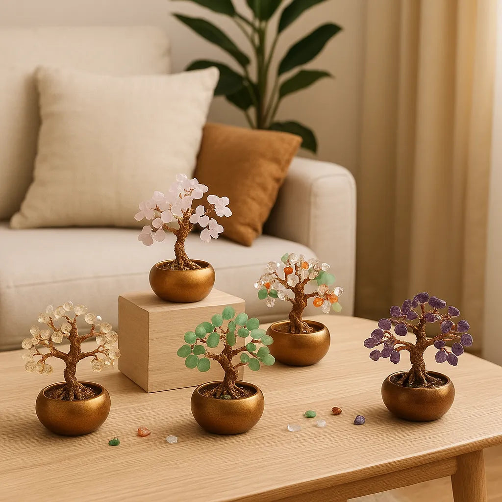 Son pot doré raffiné et son design harmonieux font de l'Arbre de Vie "Énergie Précieuse" un véritable bijou décoratif, parfait pour un bureau, un salon ou un espace de méditation.