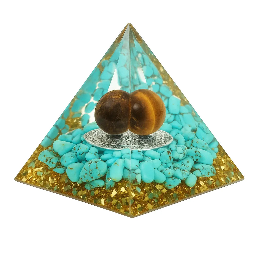Guérison - Pyramide Orgonite en Turquoise et Œil de Tigre